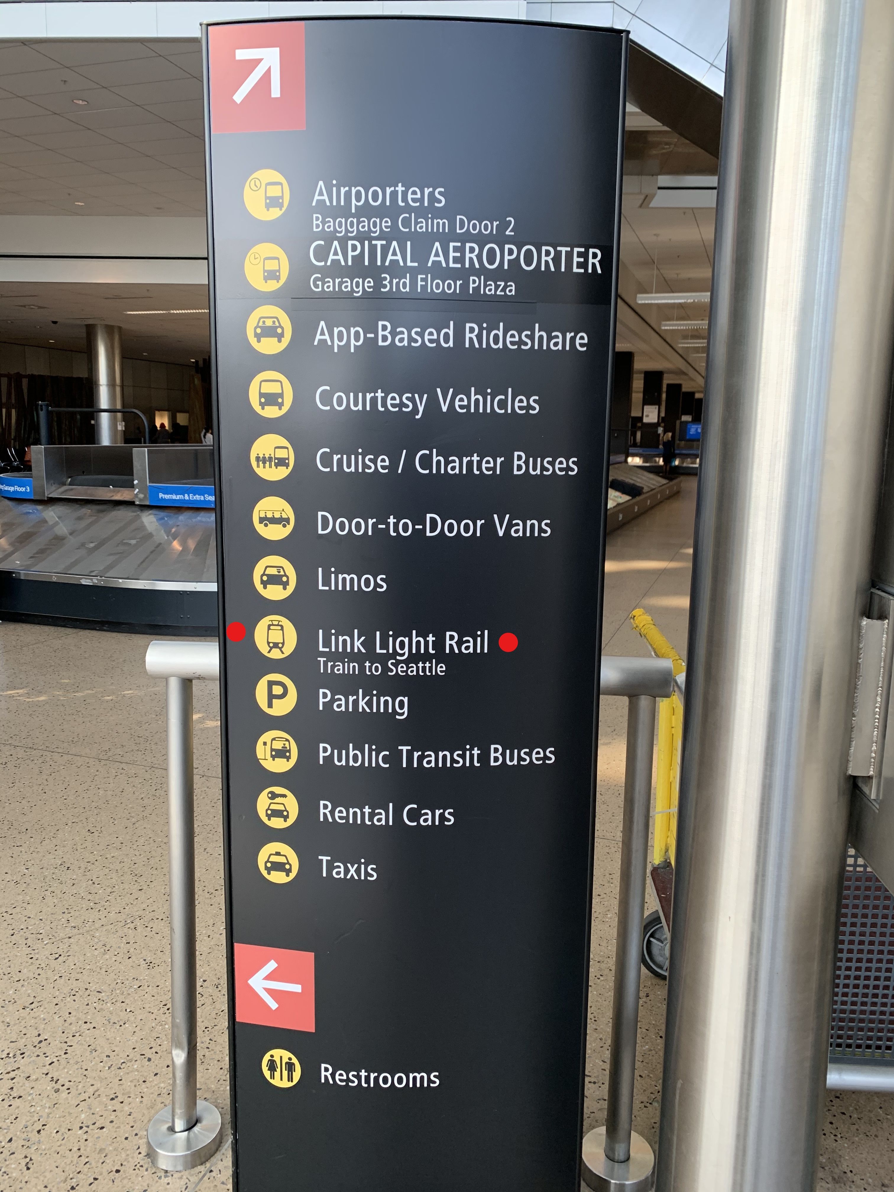 歷經10小時的長途飛行真的是坐到屁股痛,我們人生第一次長途飛機終於落地安全抵達西雅圖,塔科馬國際機場是在二戰之後啟用,具有年代感但又不失便利性。可以在機場直接轉乘輕軌 (Link Light Rail) 抵達西雅圖市區,或是搭免費接駁車至附近的租車中心 (Rental Cars),以上這兩個是我們這次美國行的重要交通工具。