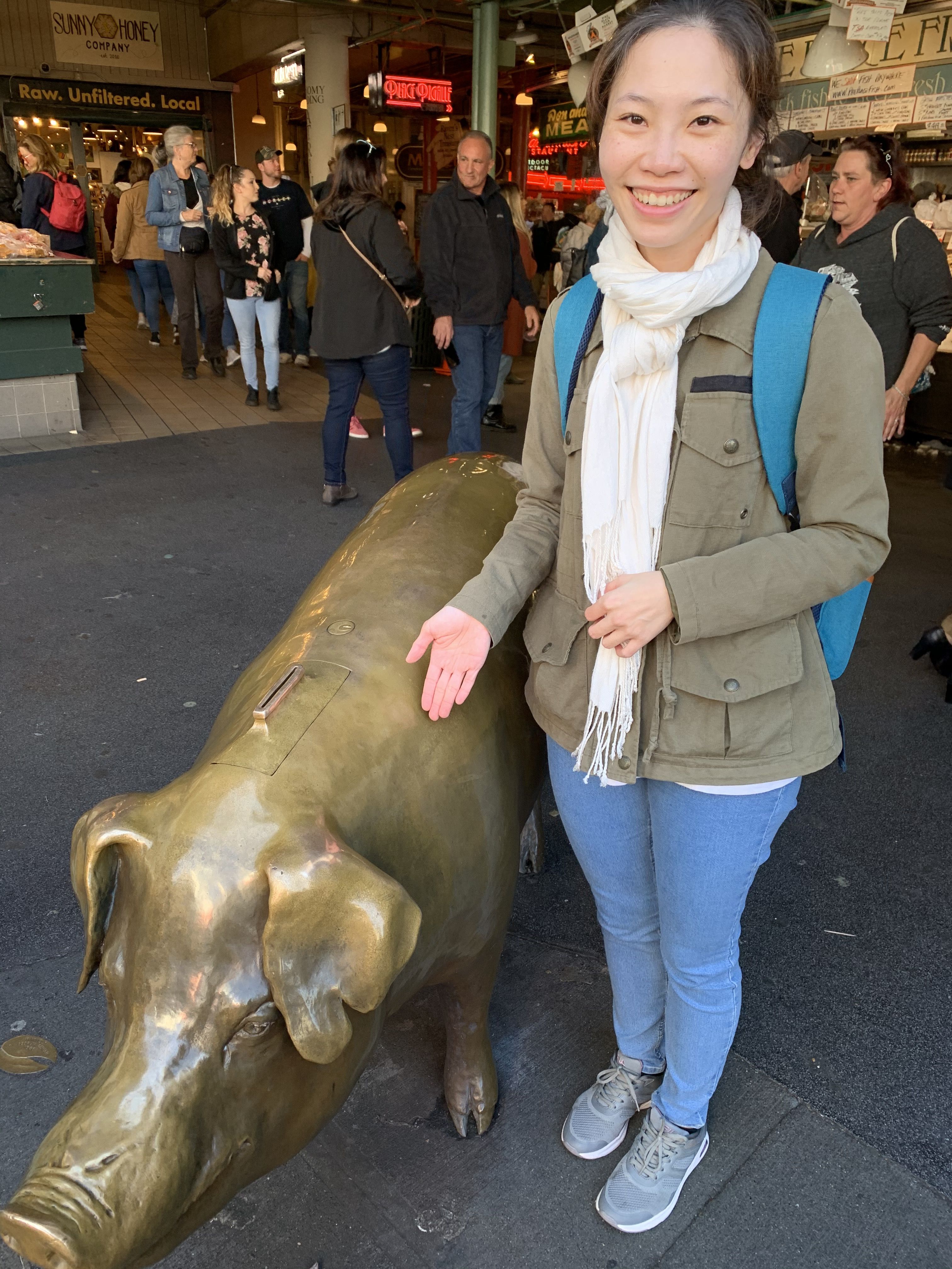 | 派克市場門口的金豬,據說摸金豬可以帶來好運 |