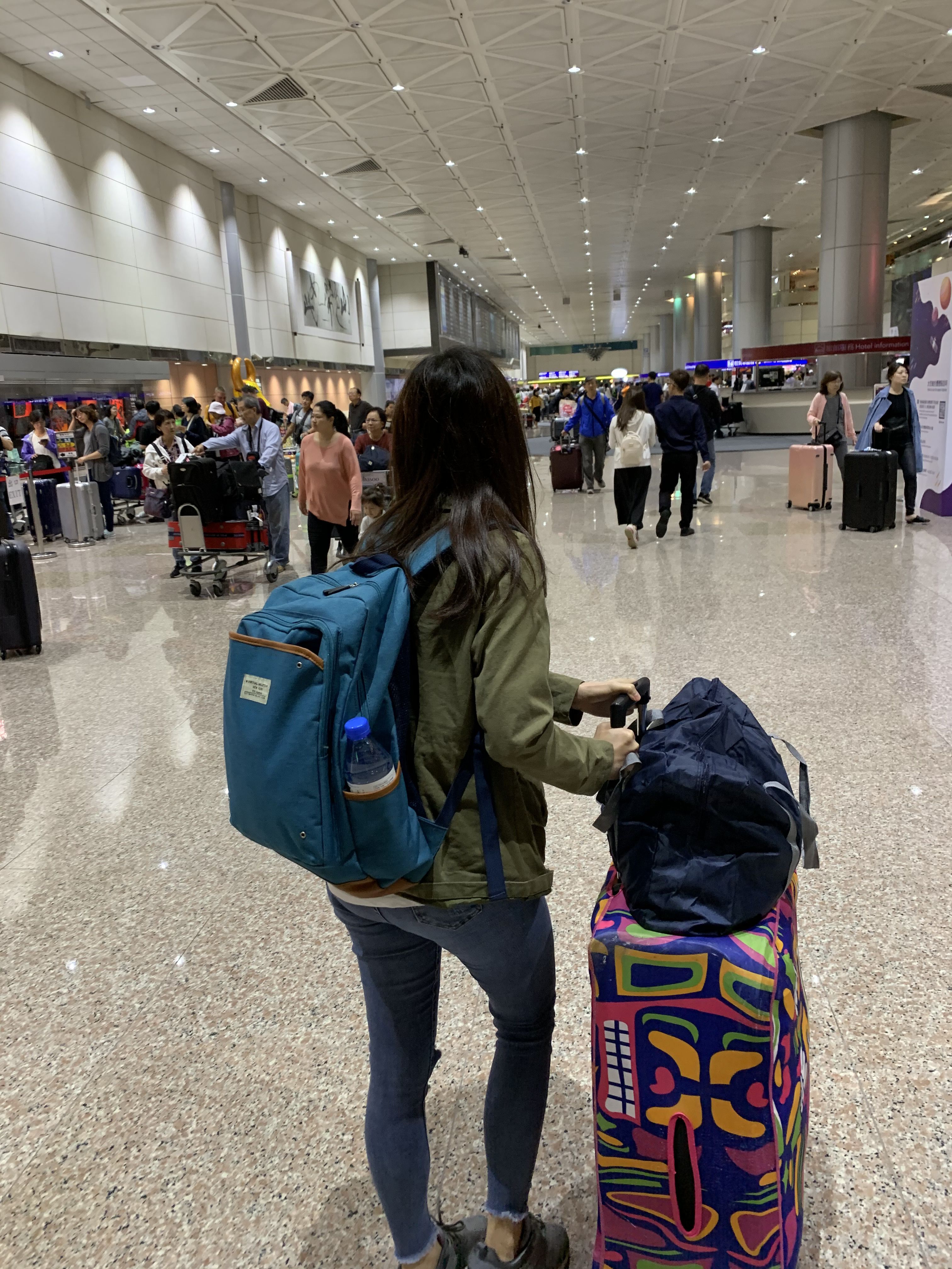 中途我們在東京成田機場轉機,待機時間大概五小時,分秒必爭的我們決定先在日本入境,搭乘接駁車到成田機場第二航廈出境前4樓商店街開心購物,不小心就敗了UNIQLO和無印良品兩大袋,當下甚至懷疑自己是美國行還是日本行?