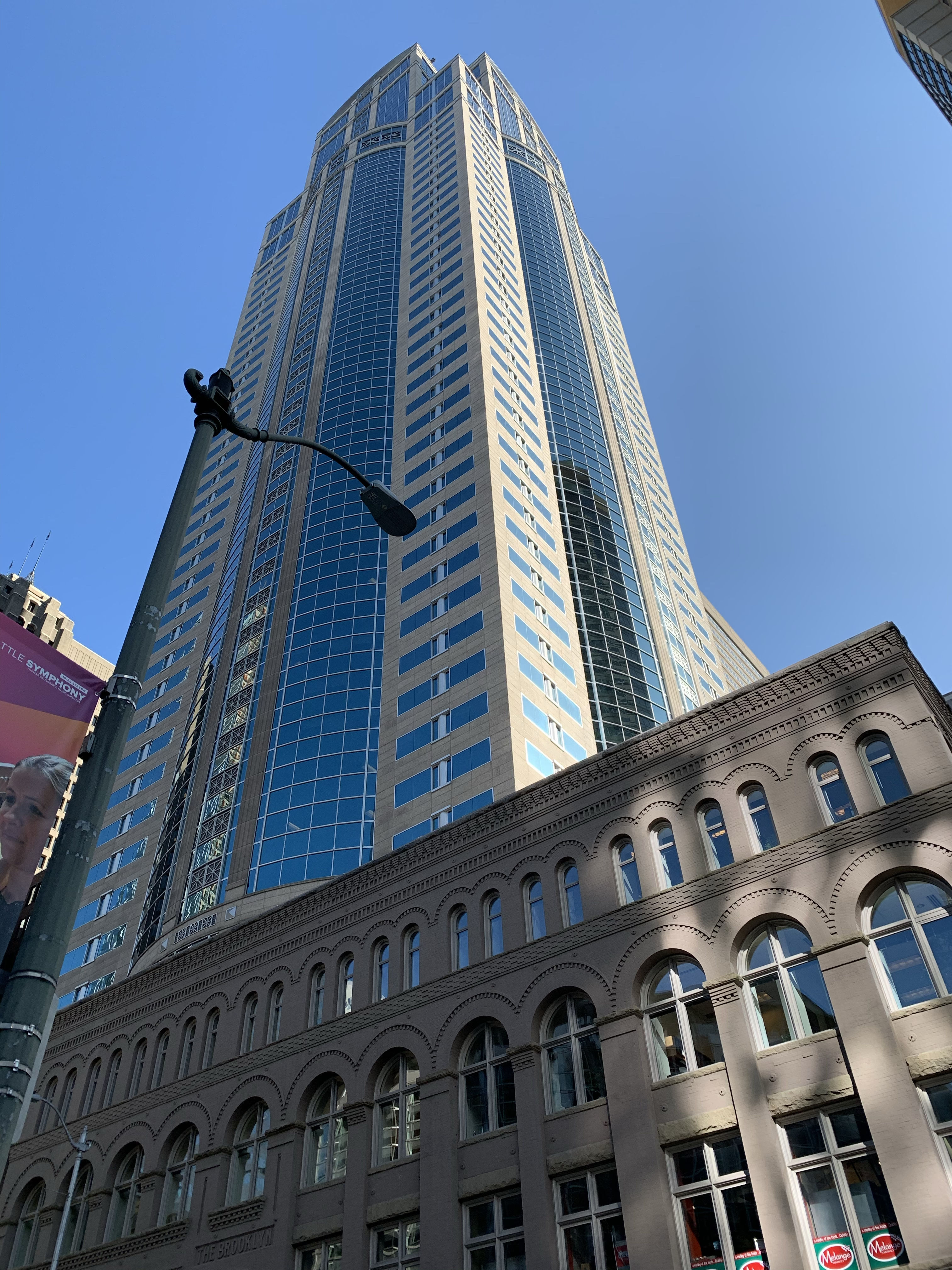 再來,令我印象深刻的街景,剛出University Street站的街道準備走走看看的同時,我發現原來這個城市沒有想像中的有安全感,不時會看到就地休息的遊民,起初先看到一兩位,可是轉個彎一整條街邊坐或躺滿了遊民,一雙雙眼睛直盯著我們看,他們眼神中的空洞與哀傷神情讓人看了有點害怕。傍晚準備搭輕軌離開時,我們遇到了一位一手拿著酒瓶一手拿著鐵鎚到處亂敲建築物以及公共腳踏車的女子,街上人來人往,大家能閃則閃,深怕一個不小心被攻擊。為了避開這位已經精神失常的女士,我們繞了好大一圈往北多走了一個站Westlake站上車,才結束了這趟小小驚魂旅程。希望這只是單純的個案。