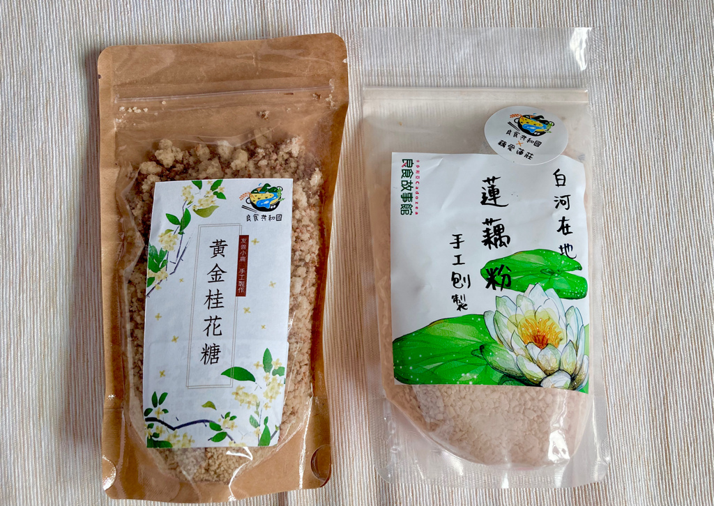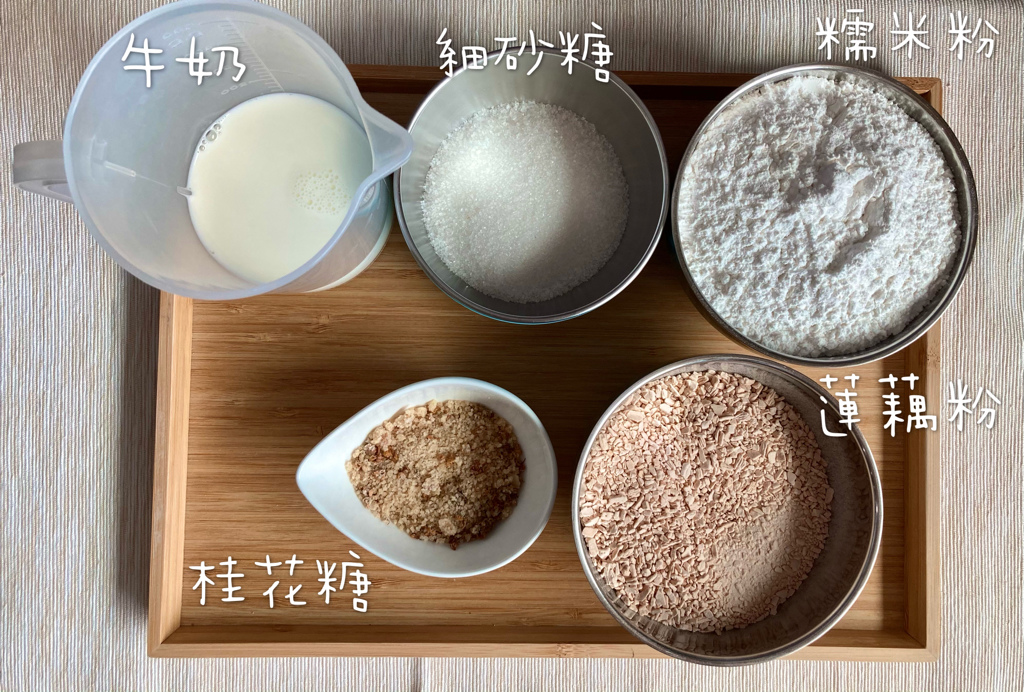 開心的把桂花糖和蓮藕粉一次買齊,媽咪我要來挑戰看看這道眉莊姐姐的拿手點心『藕粉桂花糖糕』,過過劇癮!
