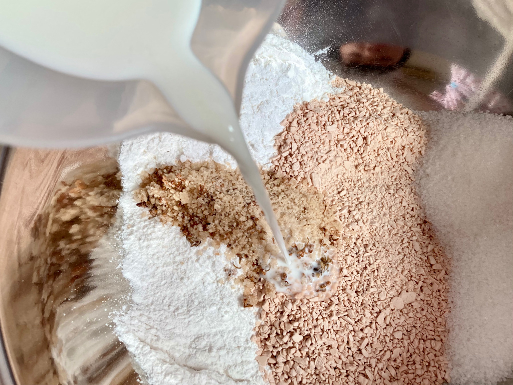 | 1、蓮藕粉、糯米粉、細砂糖、桂花糖倒入攪拌盆中。 |