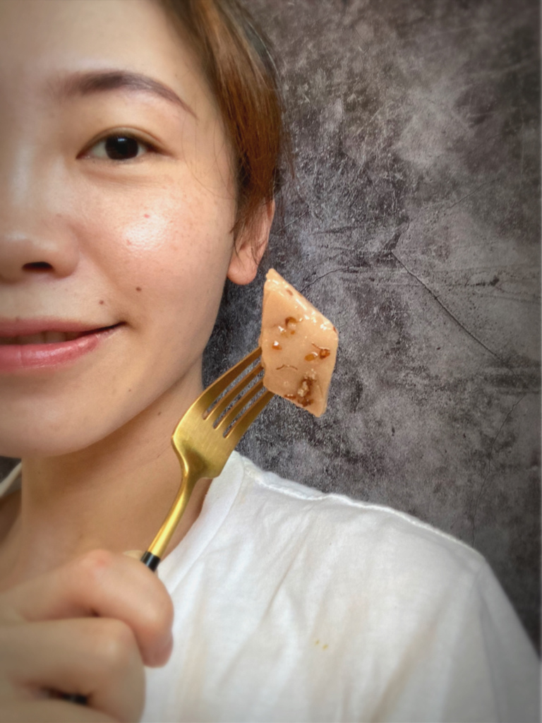 成功取出藕粉桂花糖糕後,用刀子去掉醜醜的邊緣,切成好入口的小塊狀就完成啦!😋